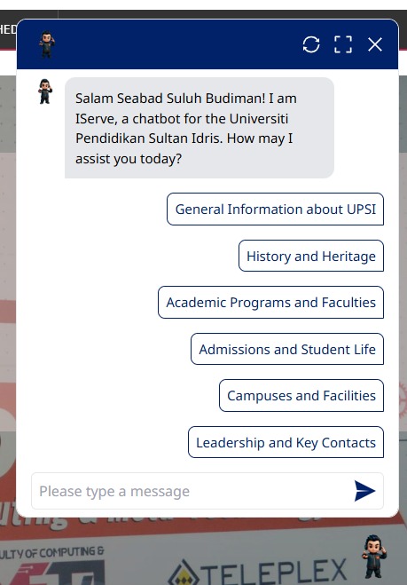 Pembangunan Chatbot Universiti UPSI Perkukuh Transformasi Digital Kampus 1 April 2025 hingga 31 Mac 2026